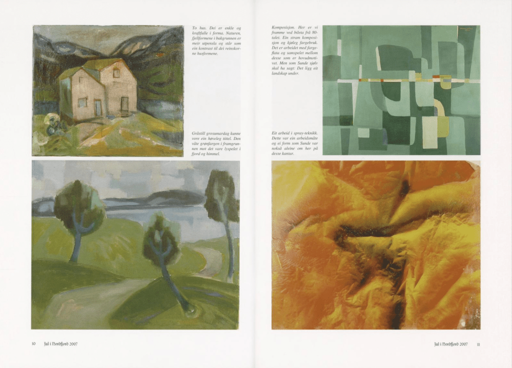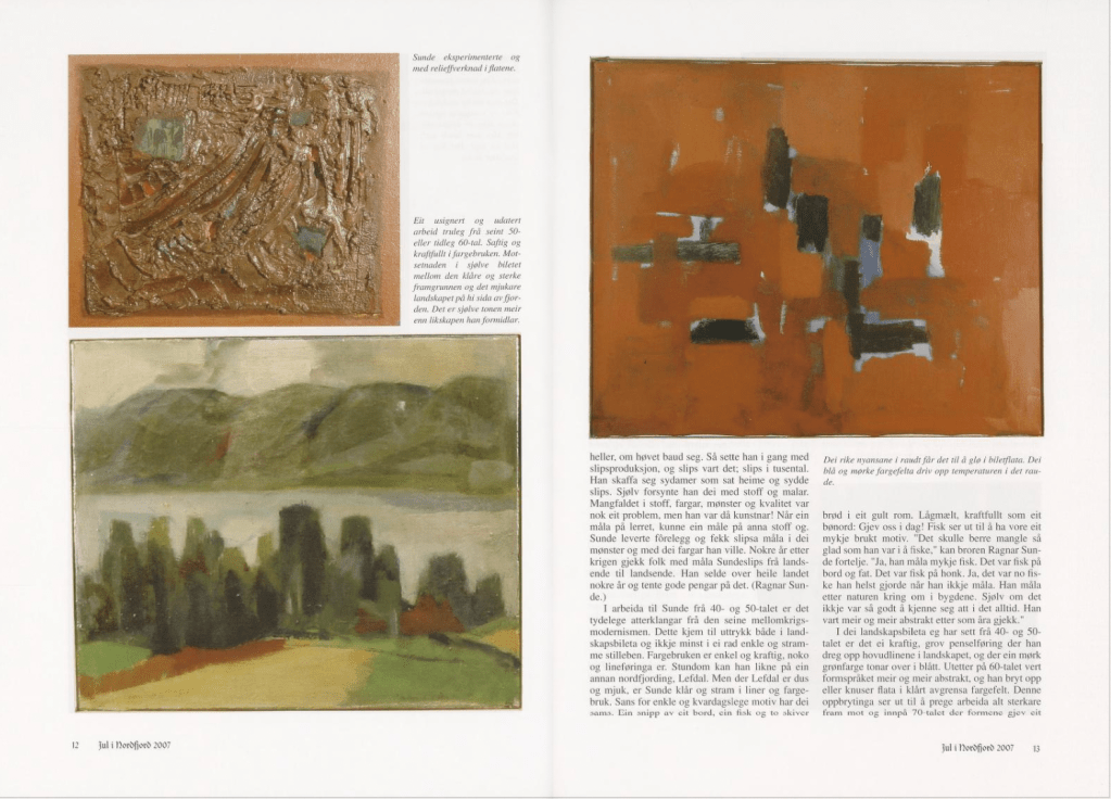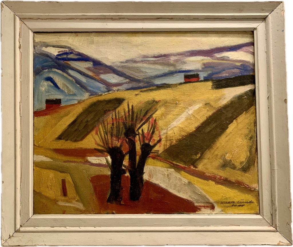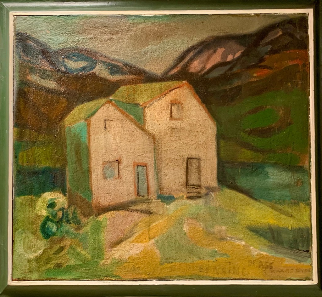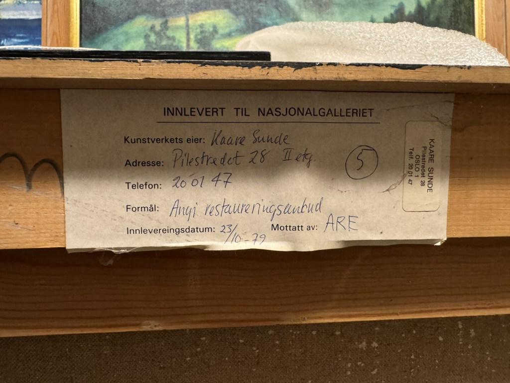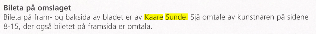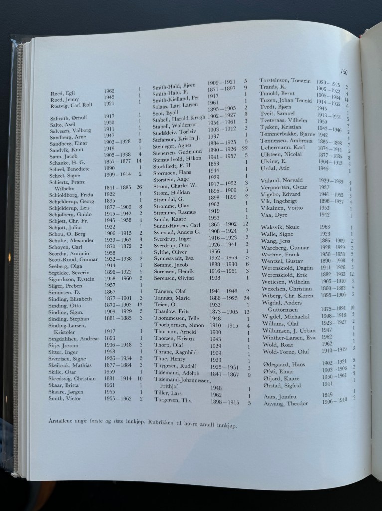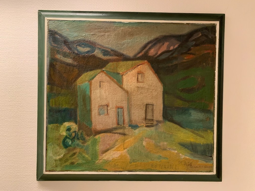 Eg var ein tur innom Bergen Kunsthall. Fekk sjå jubileumsboka. Den er ikkje til sal lenger, men Thea som jobbar der henta fram eit eksemplar frå arkivet. Eg jobbar no vidare med å få tak i eit foto av måleriet Bergen Kunstforening kjøpte i 1953.