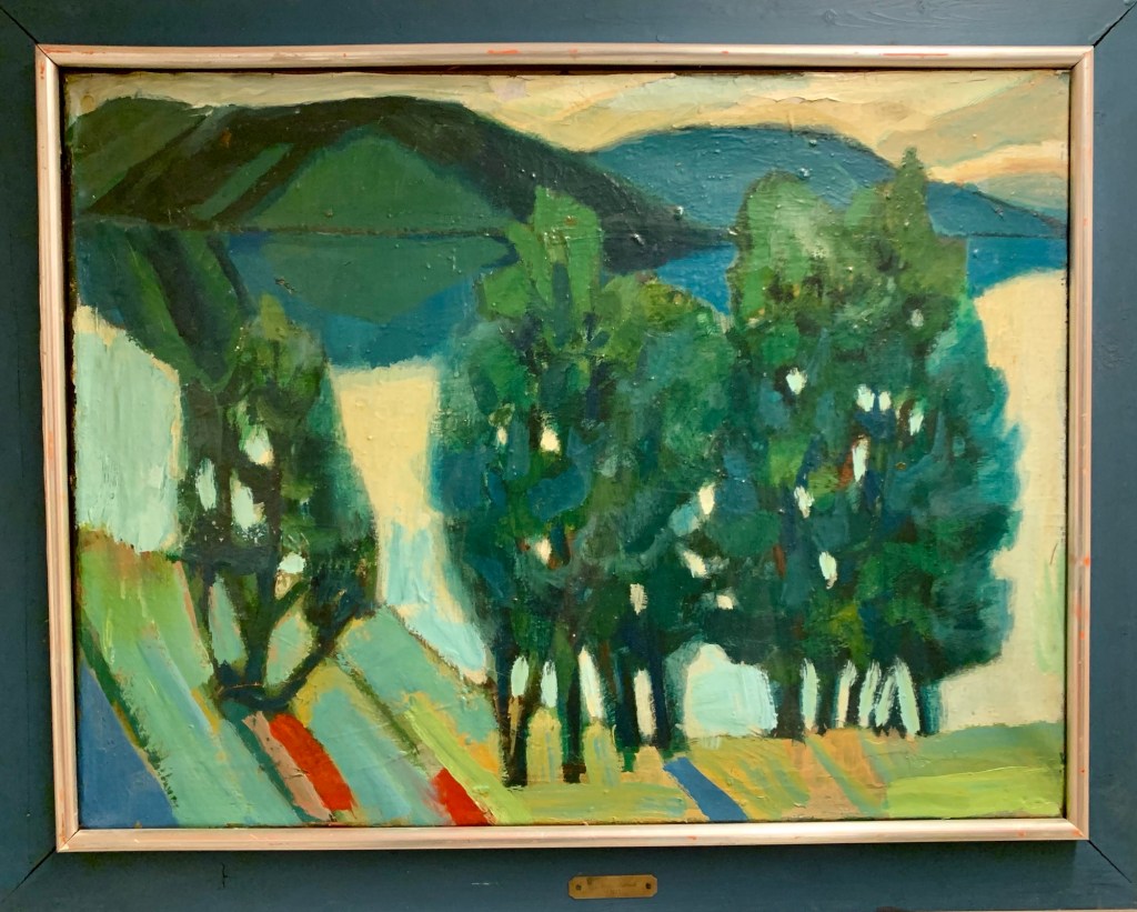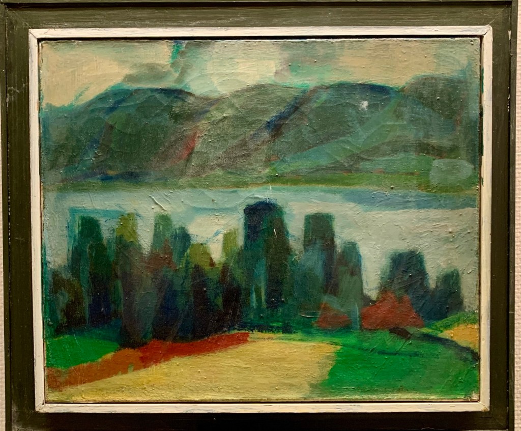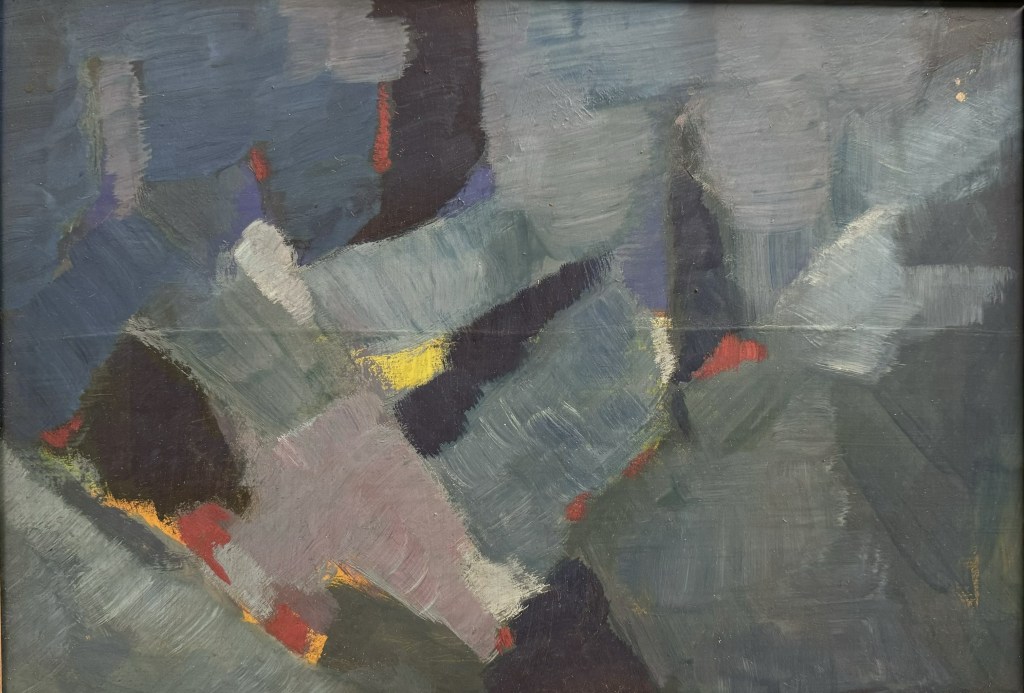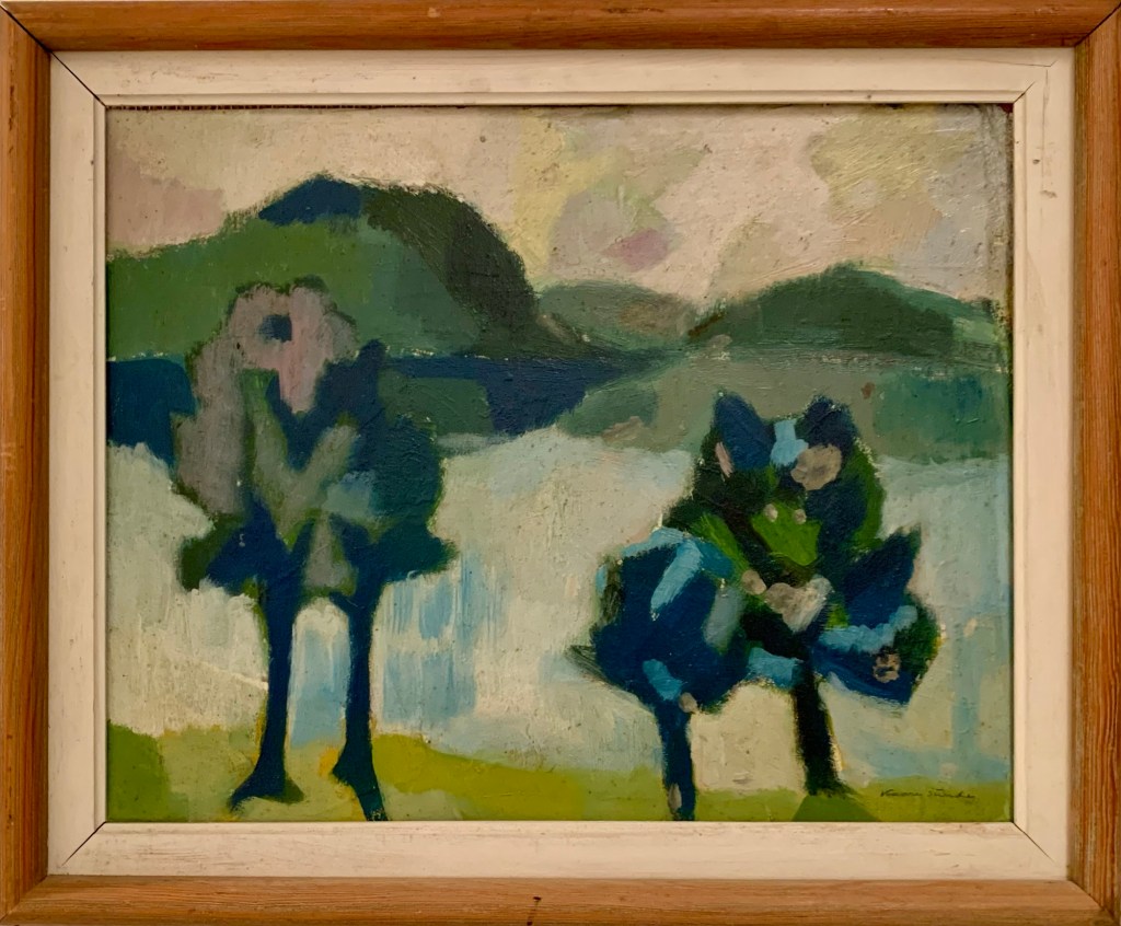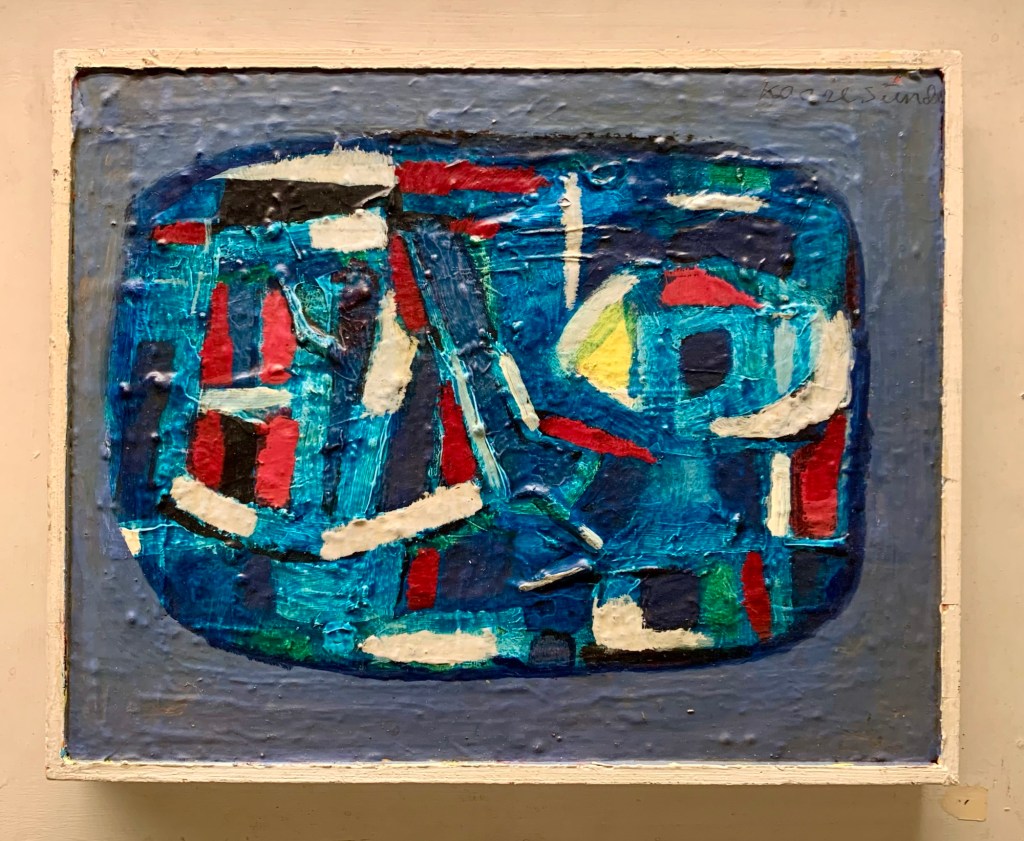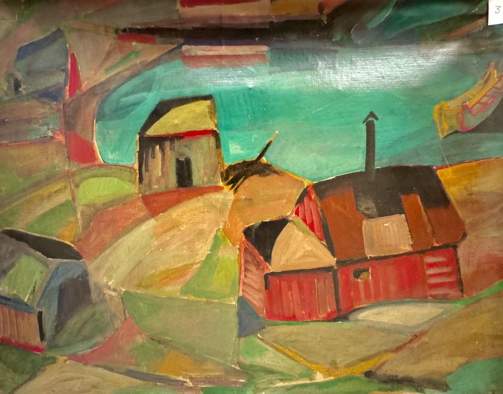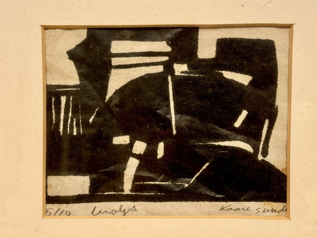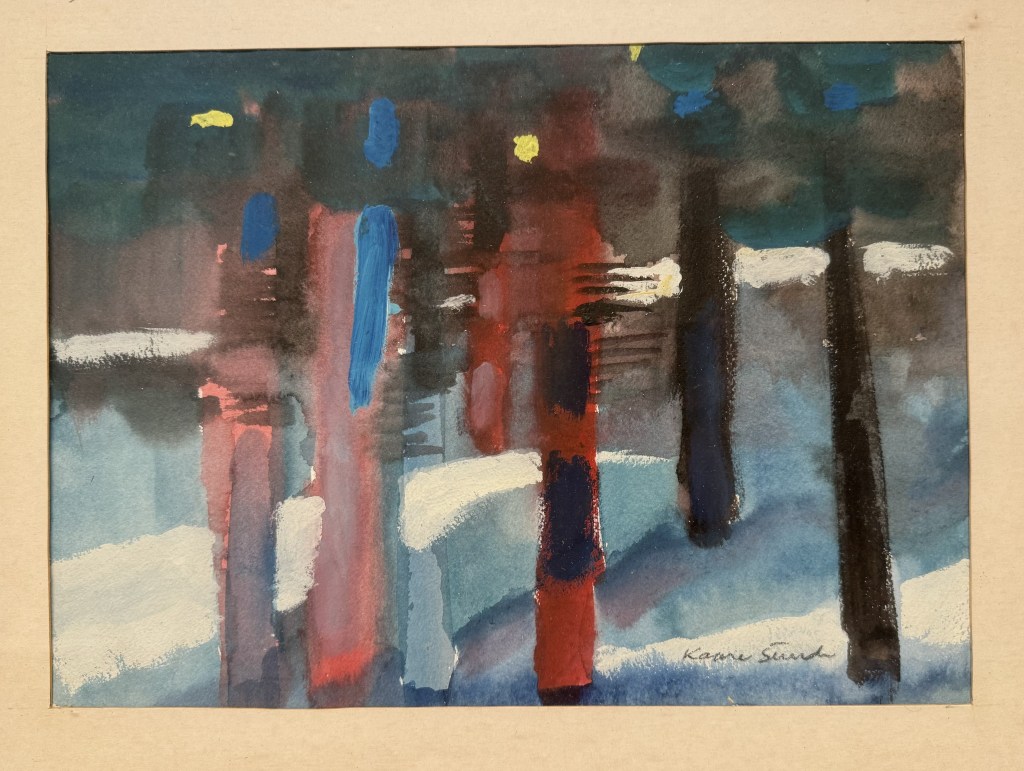 Eg var ein tur innom Bergen Kunsthall. Fekk sjå jubileumsboka. Den er ikkje til sal lenger, men Thea som jobbar der henta fram eit eksemplar frå arkivet. Eg jobbar no vidare med å få tak i eit foto av måleriet Bergen Kunstforening kjøpte i 1953.