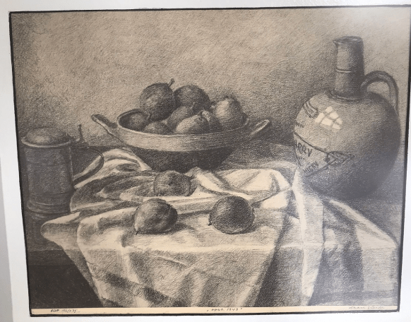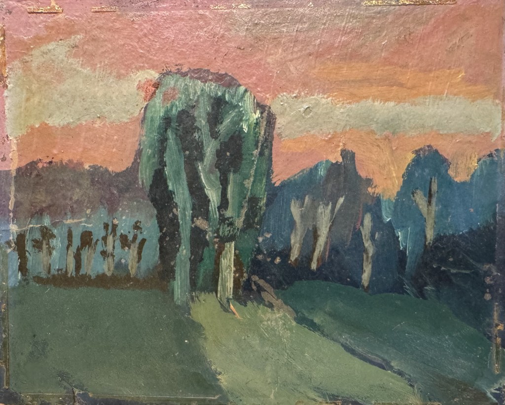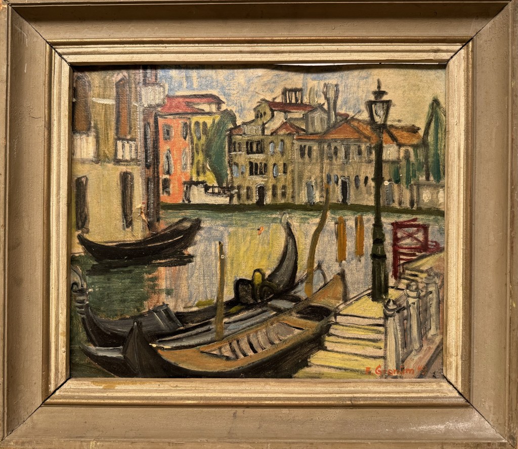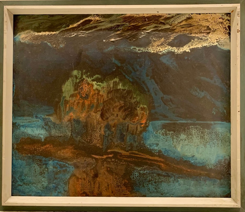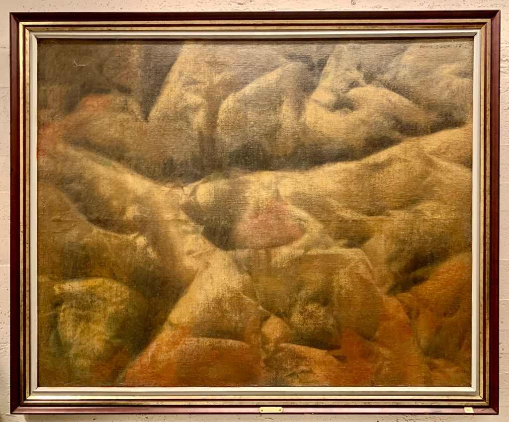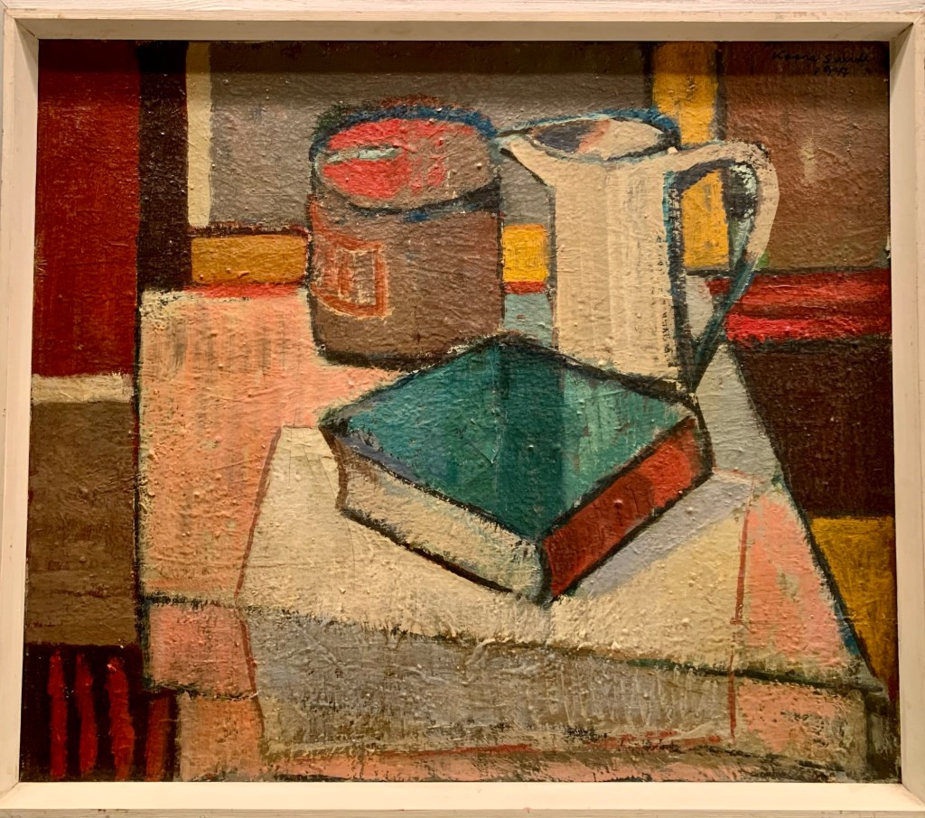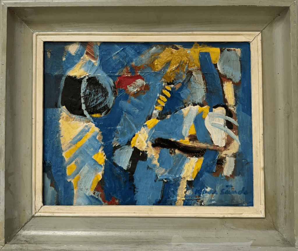 Eg var ein tur innom Bergen Kunsthall. Fekk sjå jubileumsboka. Den er ikkje til sal lenger, men Thea som jobbar der henta fram eit eksemplar frå arkivet. Eg jobbar no vidare med å få tak i eit foto av måleriet Bergen Kunstforening kjøpte i 1953.