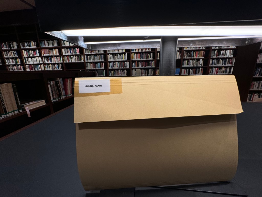Mappa til Kaare Sunde i biblioteket på Nasjonalmuseet