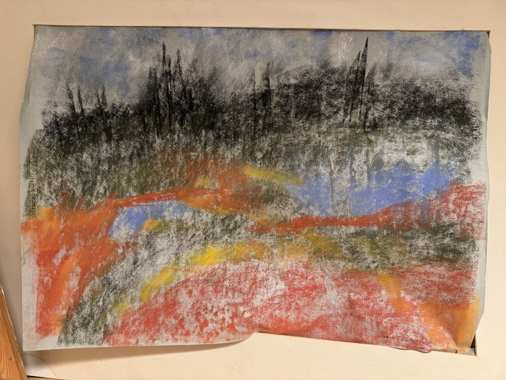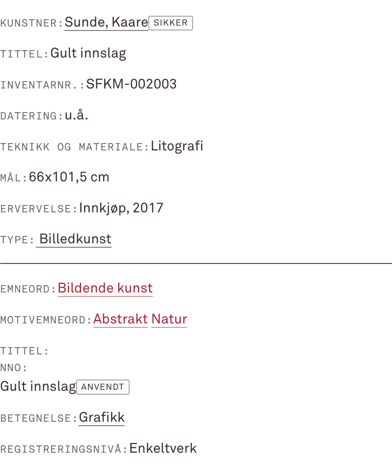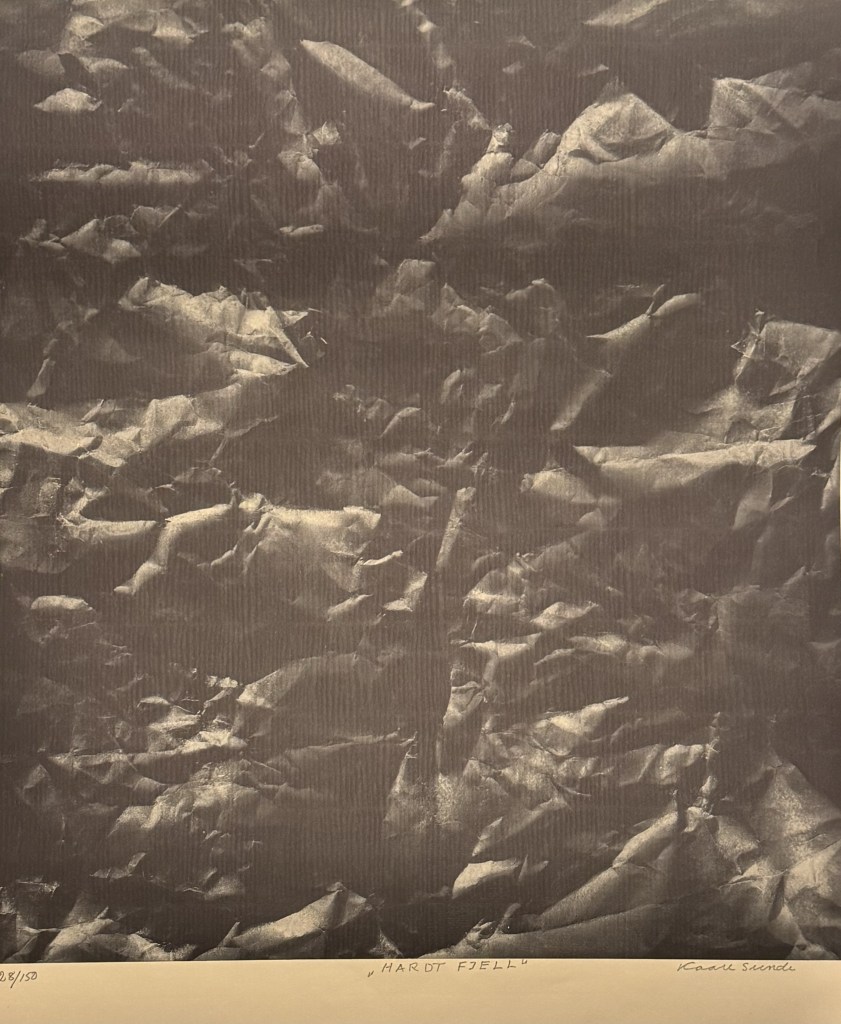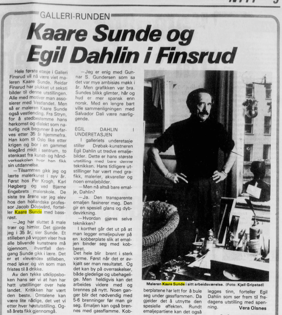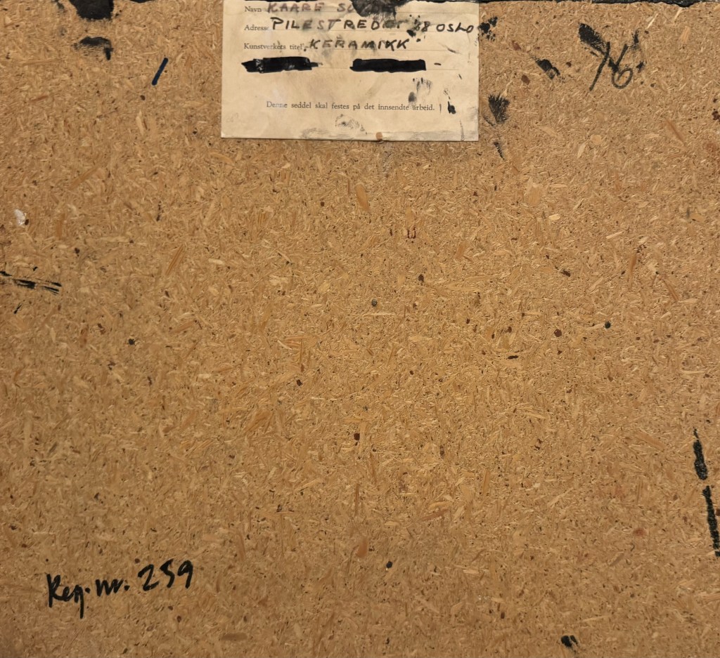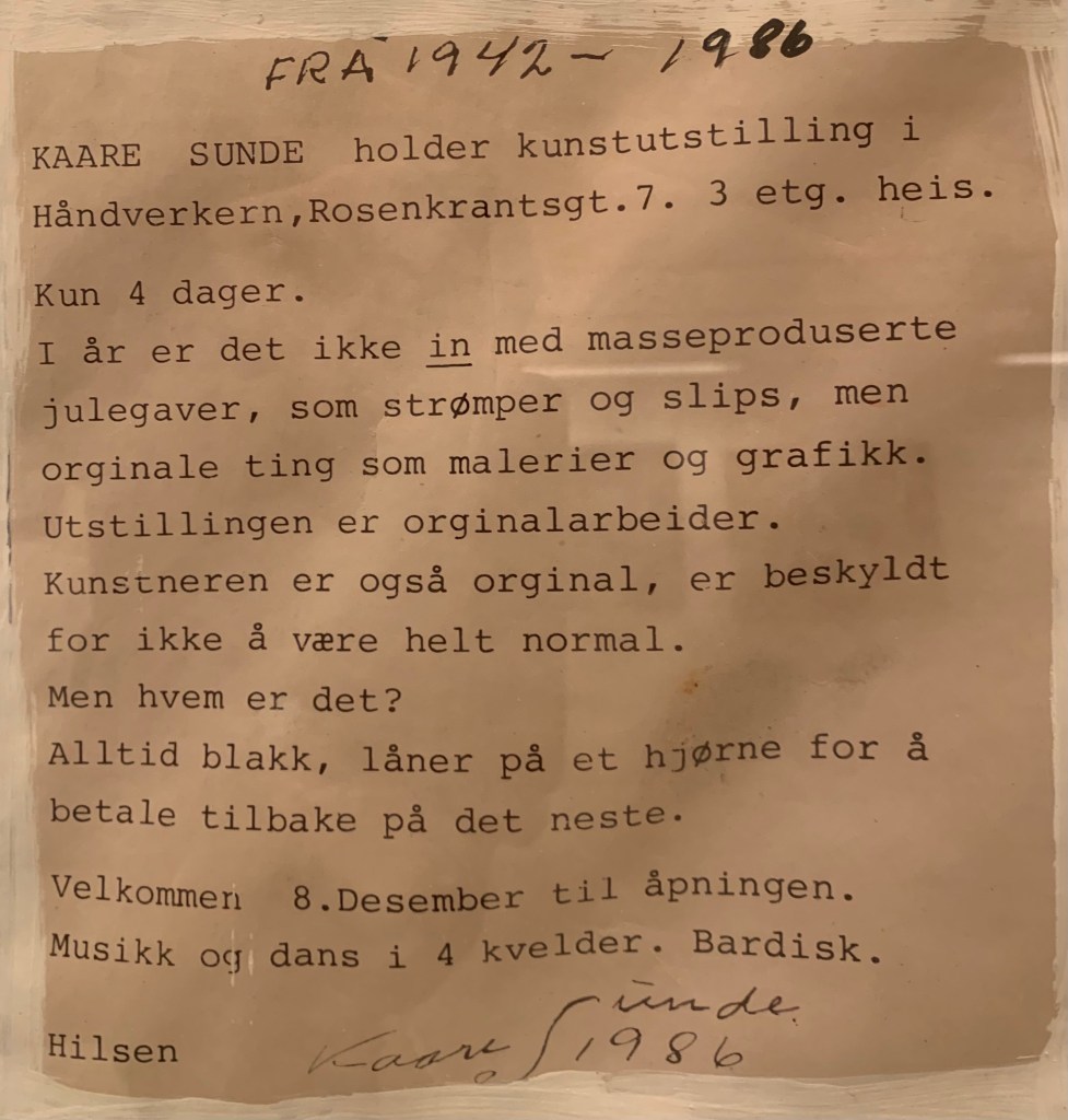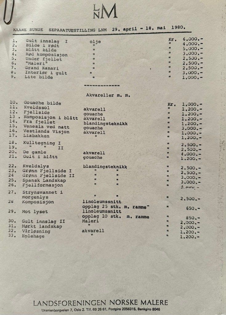 Dessverre fann eg ikkje så mykje i mappa, men likevel spennande info om ei separatutstilling i Oslo 29.april – 18.mai i 1980. Her fann eg informasjon om titlar og diverse teknikkar som han brukte.