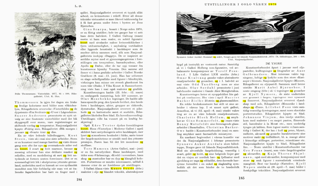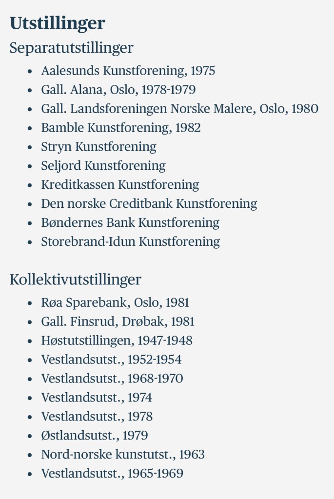 I jubileumsboka til Landsforeningen Norske Malere fann eg ein oversikt over utstillingar 1968-2018