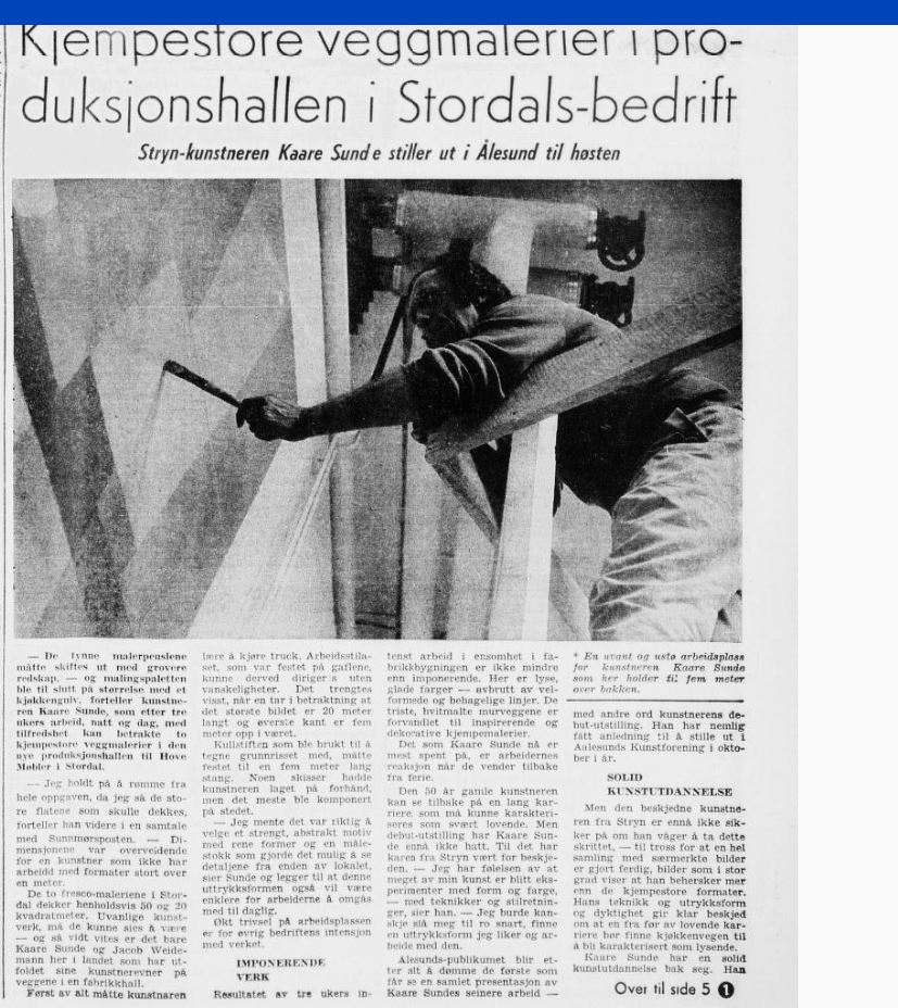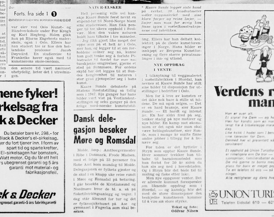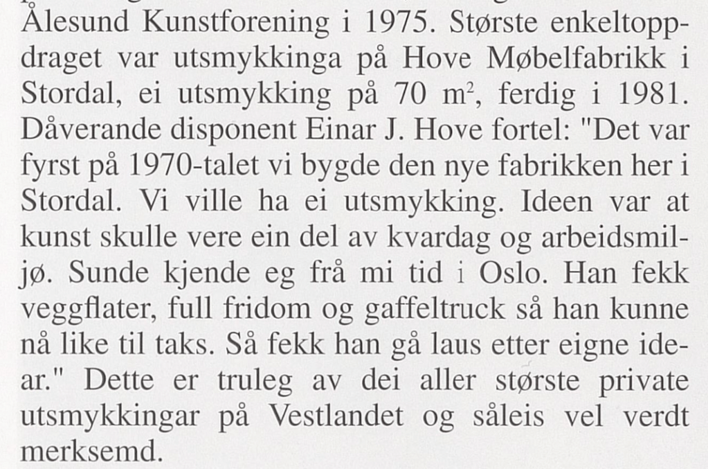 Kaare Sunde målte ein veggdekorasjon, Hove Møbelfabrikk, Stordal (70 m2, 1981?, eller var det i 1974-1976?)